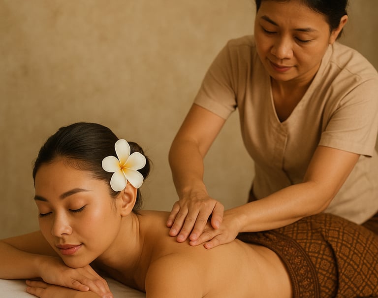 Deze massage is gebaseerd op de authentieke Thaise technieken die zich richten op het stimuleren van de energiebanen in het lichaam. Tijdens de behandeling wordt het volledige lichaam meegenomen in een diepe vorm van ontspanning en balans. Door het aannemen van verschillende yogahoudingen en het toepassen van drukpuntmassage, ontstaat er een harmonieuze verbinding tussen lichaam en geest. In plaats van olie wordt gebruikgemaakt van warme, krachtige Thaise tijgerbalsem – een eeuwenoud middel met een verzachtend en verkwikkend effect.